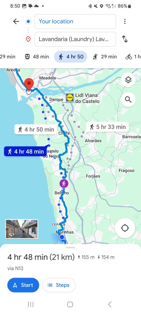 Some kind Canadians took this photo for me at nearly the end of the walk to Vila do Conde. That guy isn’t lurking, he was doing the stamping. Very lovely tiny church.