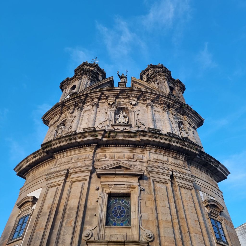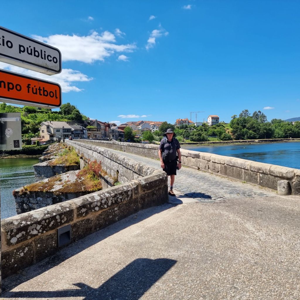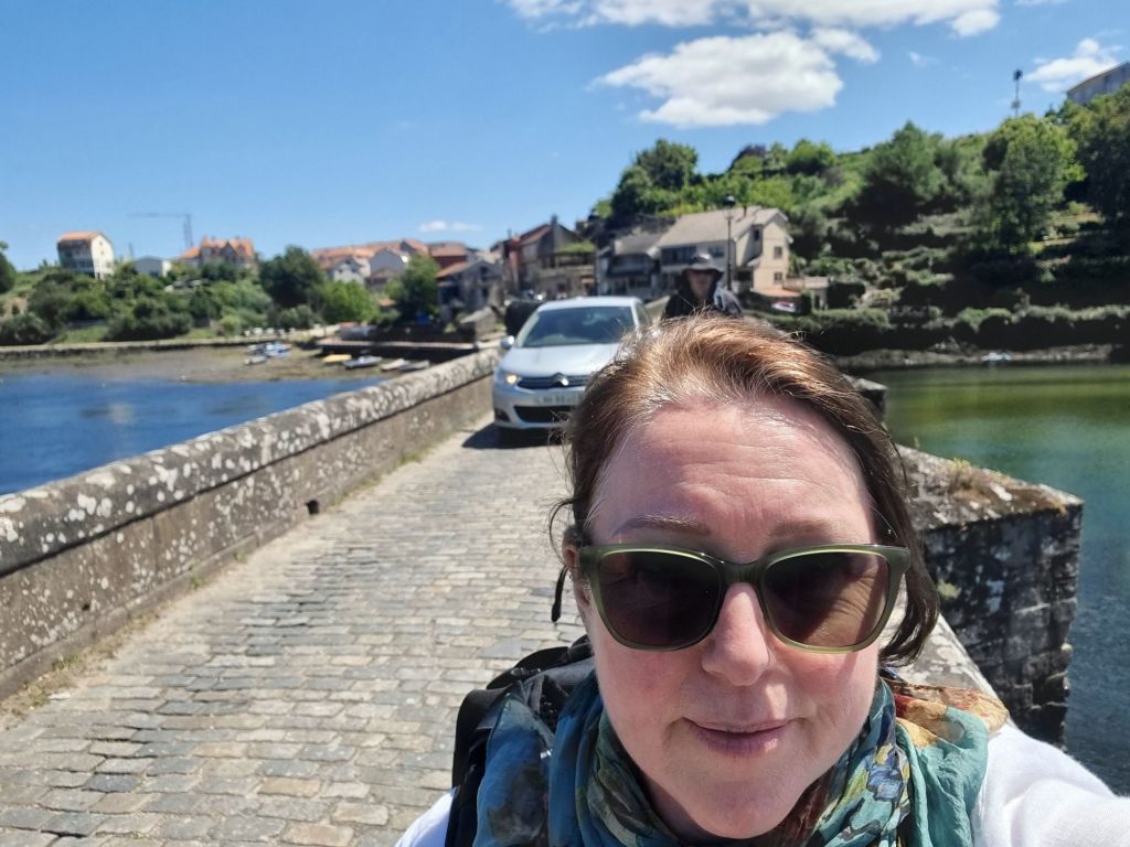 Hola. A bigger day on Wednesday with A Lot of steep climbing up amazing Roman roads and through the forest. Phew. But very beautiful. Pontevedra is a lovely town with a church dedicated to peregrinos, shaped like a scallop shell. They seem to frequently have chandeliers in churches here, even the tiny ones. Interesting. Sore feet but happy hearts.