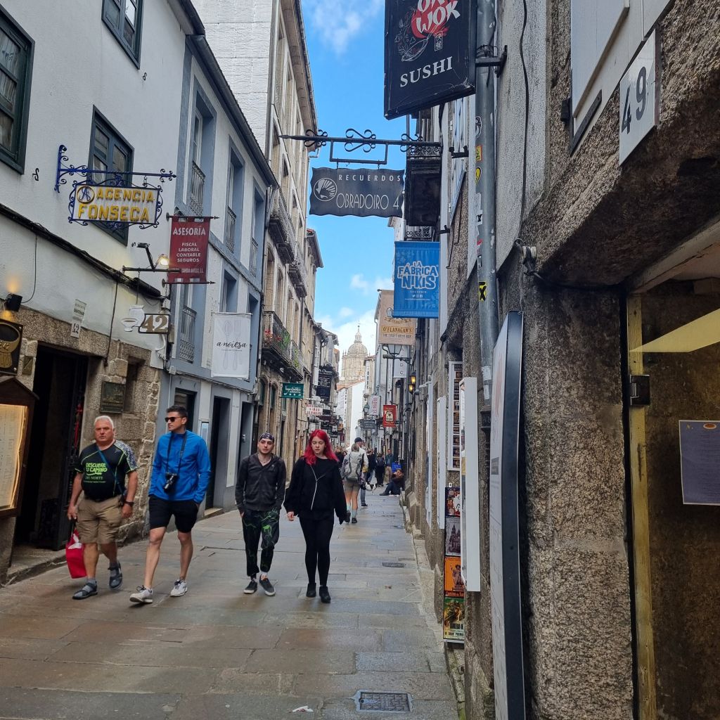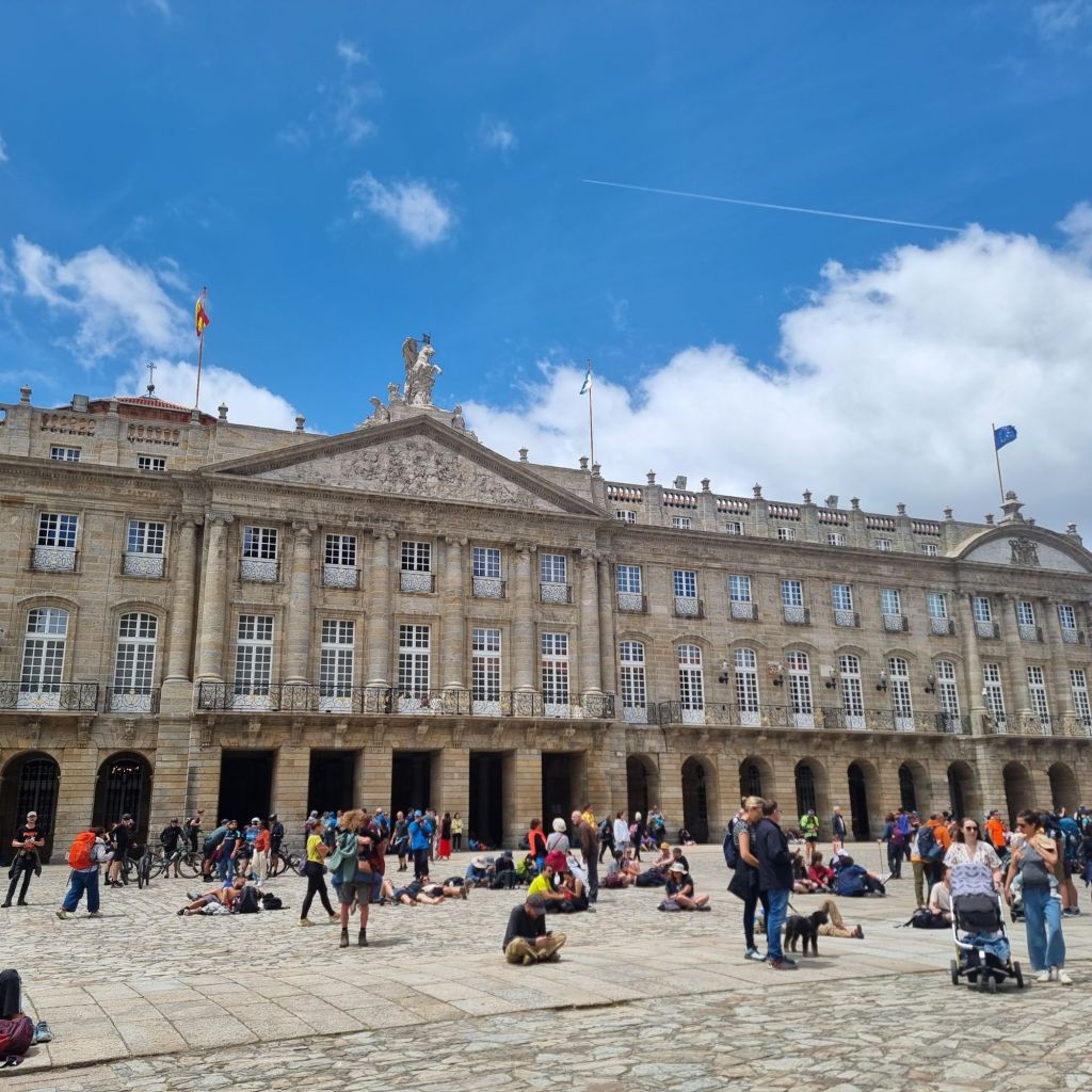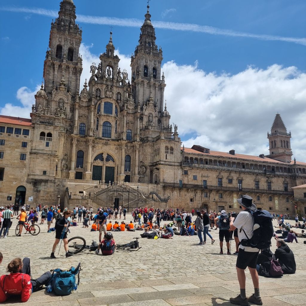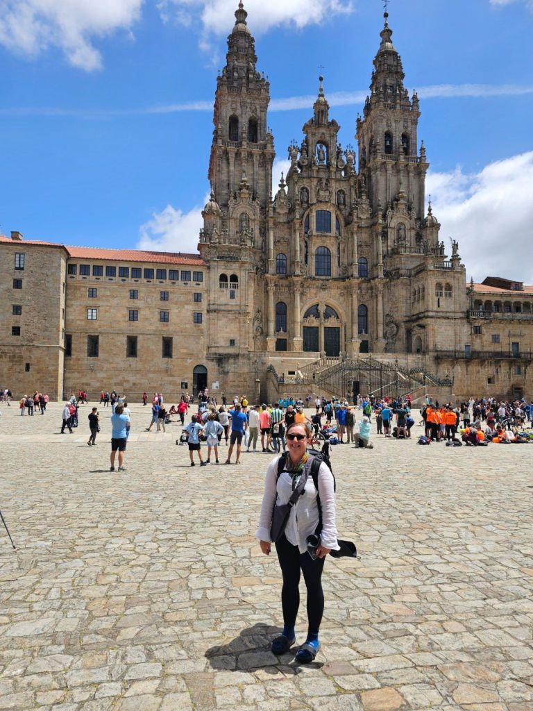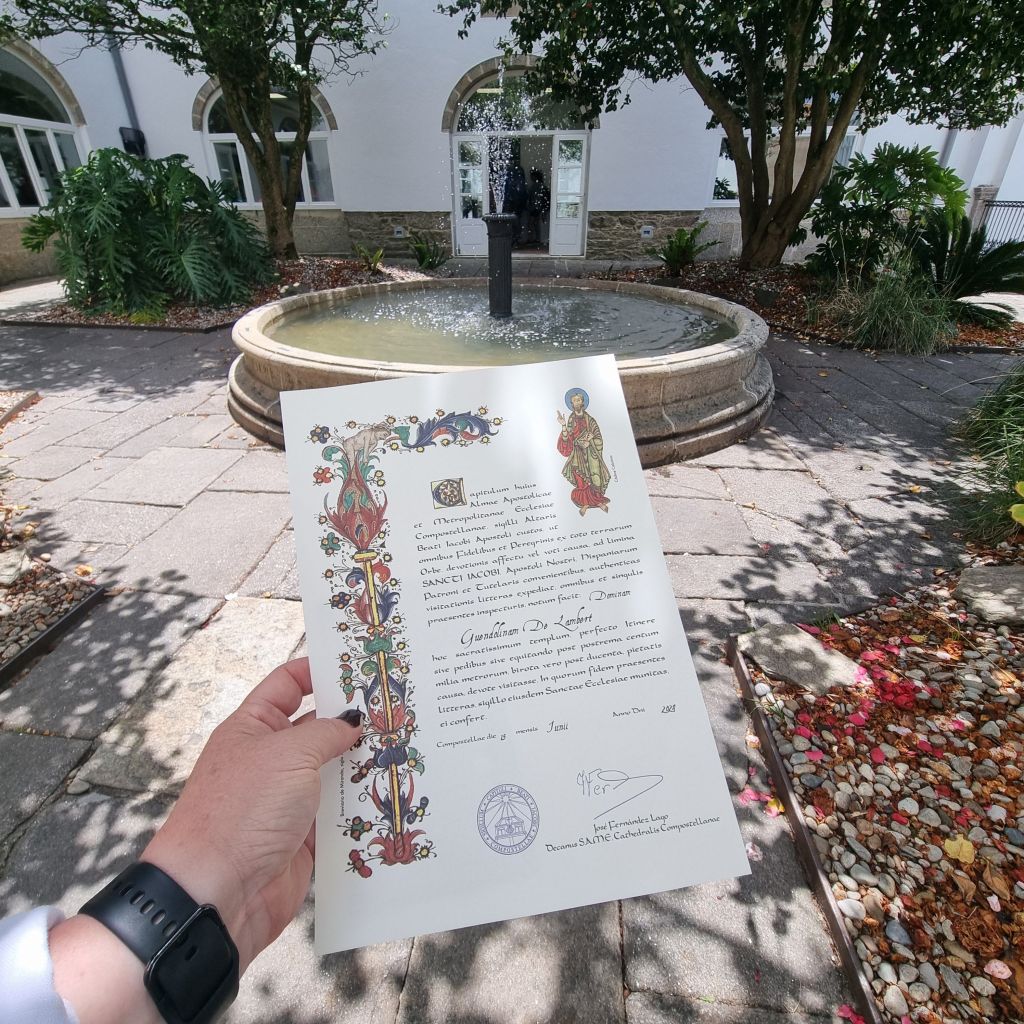Spoiler: we made it 😁. The 16kms was, as is the way, 21kms. But we took our time and all was OK. I did the last 5kms in my creepers and slides because I HAD to release my toes. Guy is motivated by hills (must be a growing up on a farm thing); me not so much, but he is kind and waits. Arriving and getting the Compostela was a weird collection of emotions. But mostly good, bar the super officious security people managing the queue…but the volunteers inside were lovely. They are printed in Latin, so my name is now ‘Gwendolinam’. Lol.