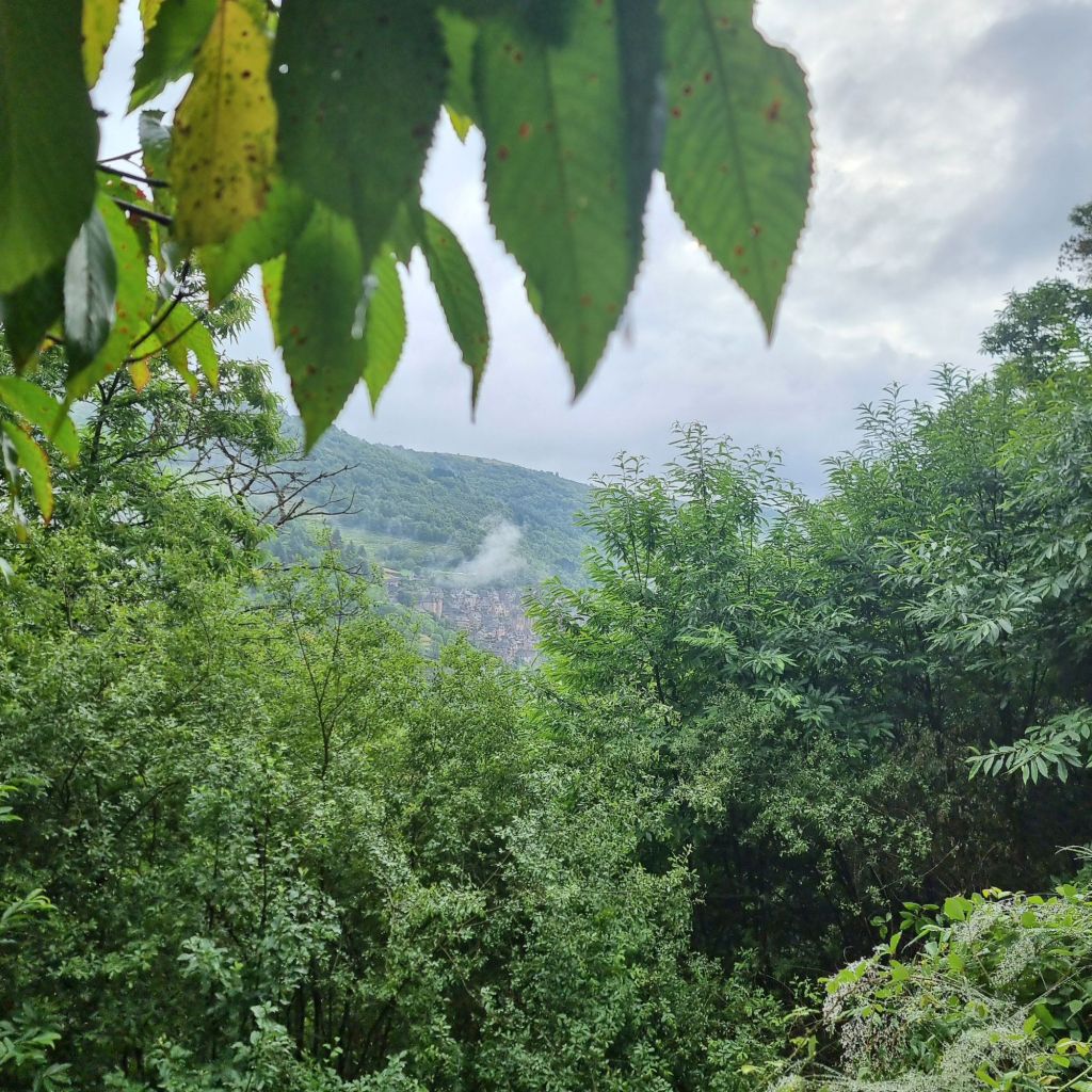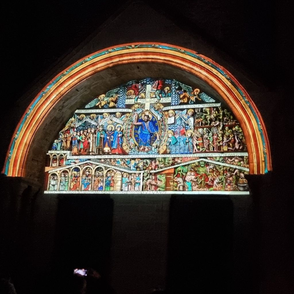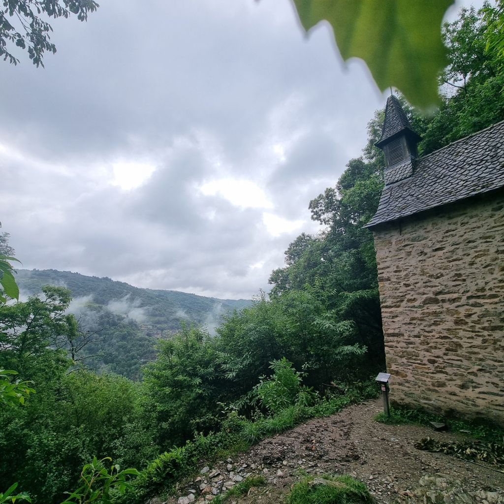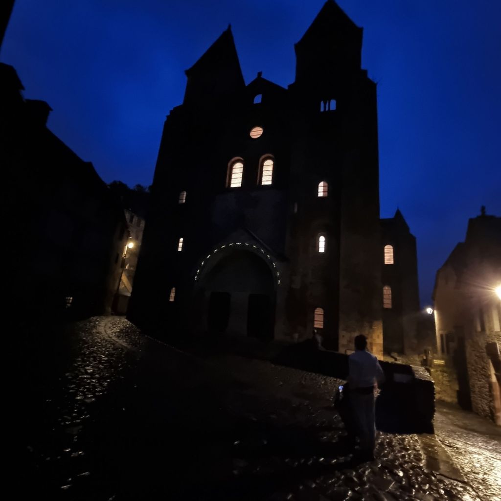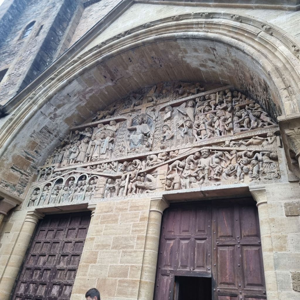 Well Conques was such a magical place – it really felt so medieval and there was a lovely pilgrims’ blessing on Saturday night, as well as a talk from the priest and then a light show on the incredible 140 character tympanium over the Abbey doors. Gruesome if you zoom in! Some small (if lighthearted) pressure to convert to avoid the devilish side of the panel…