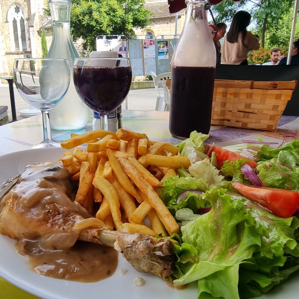 The 7 hours-ish walk started for me at 0730 and I arrived at my accommodation in Livinhac Le Haut at 5pm (check in time is typically very late here), after trying to get a bus or train or an Uber for the last 5 kms. It was not to be. My knees were so sore after a massive descent into Decazville, but in the end I made it all the way, at my special end-of-walk pace. Phew. So enjoyed my ‘pilgrims dinner’ at the local bar – the only place open. Slept well that night!
