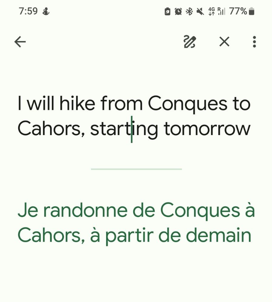 I made a decision to save my knees and get alternative transport to Figeac on Monday. This still meant walking 5 ish kms back into Decazville to get a bus and a couple of trains, but it was worth it. I met a nice older couple from Ohio on the way up the hill and we agreed it is always a balance between taking the GR65 exactly as marked, and being able to keep going another day. We all chose to keep going another day. How lucky we are.