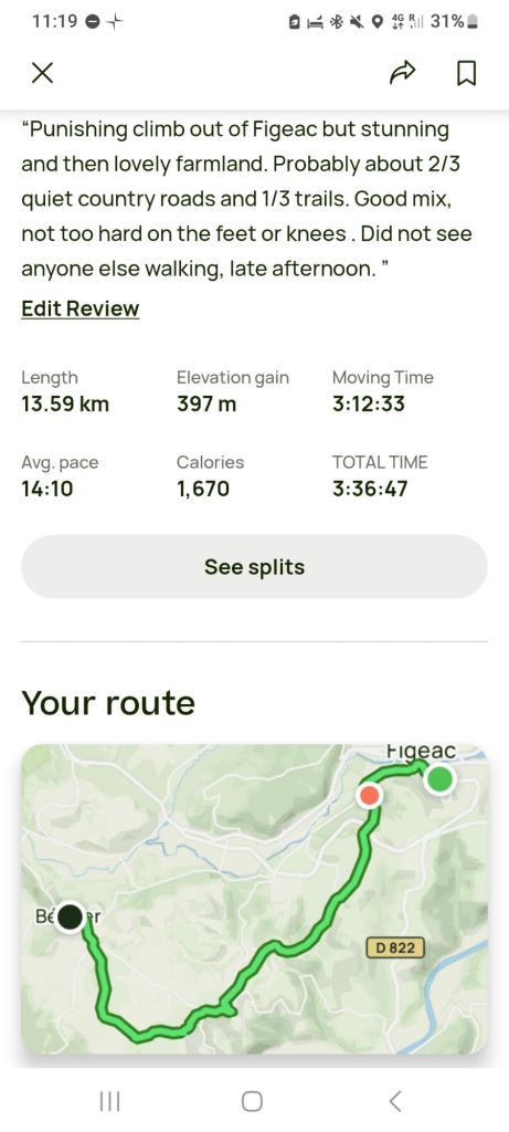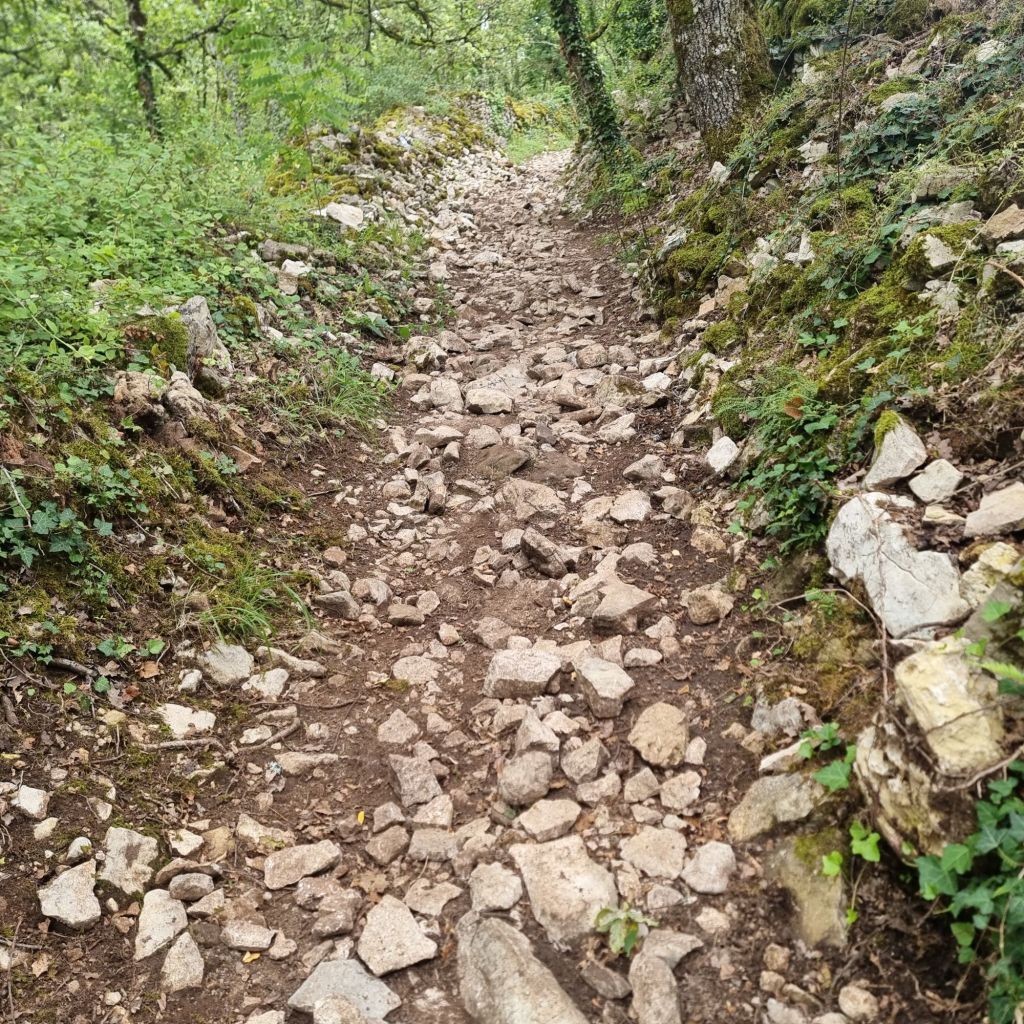 Yayyyy wifi in my accommodation for the first time in a few days. Lovely chambres d’hôtes in Gaillac, a few kms past Cajarc “Rooms of the mischievous cats”; how could I not stay there? Another big day yesterday (admittedly a took at least one slight turn off piste and may have added a km or three… ) through beautiful Causse landscape with so many great rock formations including the UNESCO-protected Dolmens de Pech Laglayre, 3000-ish years old; I. Can’t. Even.